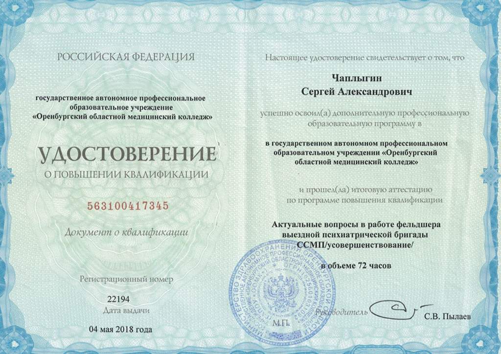 - Повышение квалификации - 2019 - Оренбургский областной медицинский колледж